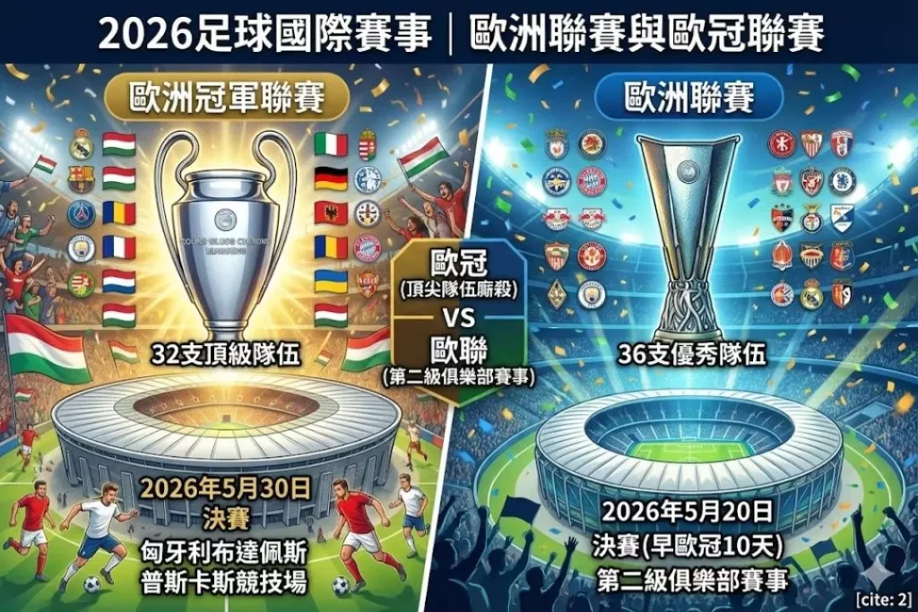 2026足球國際賽事|歐洲聯賽及歐冠聯賽